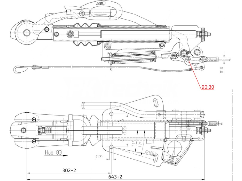 Převodový poměr přepákování nájezdové brzdy je nastaven napevno a nelze ho změnit pro jiné kolové jednotky.