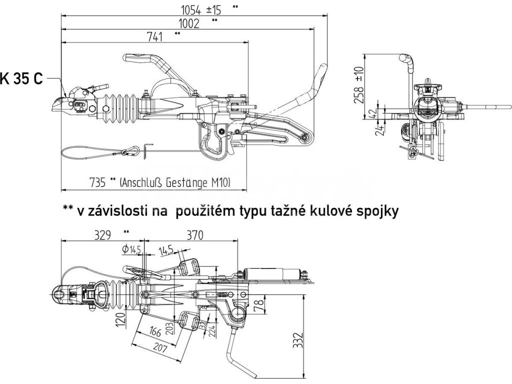 Nájezdová brzda KNOTT KFG35-D, brzda Z-TRAILER AT35, spojka AV35
