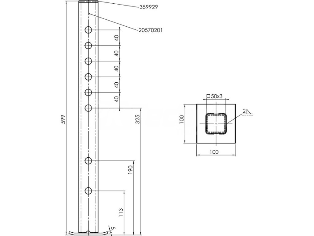 Pevná opěrná noha AL-KO, 113-600 mm.