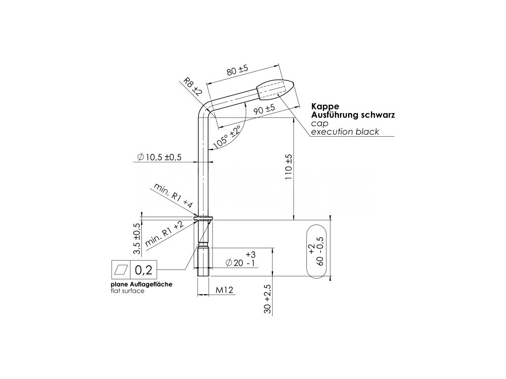 Prodloužená klička držáku opěrného kolečka, M12x60 mm, WINTERHOFF