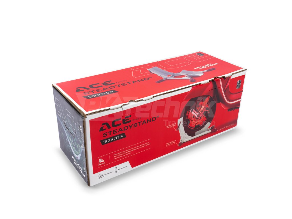 Az Acebike SteadyStand robogóállványt kifejezetten robogók parkolására tervezték, és szinte minden típusú ilyen járműre alkalmazható. A mi állványunkkal könnyen és nagyon biztonságosan parkolhat a robogóval. Az állvány akkor is nagyon hasznos, ha karbantartást végez a robogón vagy a pitbike-on, és akkor is használható, ha nem akarja fáradságosan felemelni a kerékpárt a főállványra.