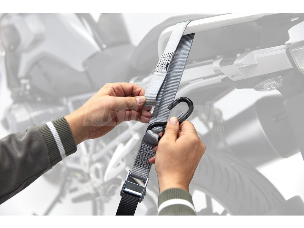 Az Acebikes Cam Buckle Strap Duo legfeljebb 300 kg teherbírású és 35 mm széles, így megbízhatóan stabilan rögzíti a motorkerékpárt szállítás közben. Ezek a hevederek néhány egyszerű lépésben rögzítik motorkerékpárját. A hevedereket praktikus csomagolásban szállítjuk tárolótáskában, hogy mindig készen álljanak a használatra.