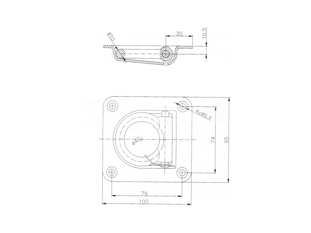 A tál a padlóhoz négy süllyesztett M6-os 74x79 mm-es csavarral van rögzítve (a csavarok és anyák nem tartozék).