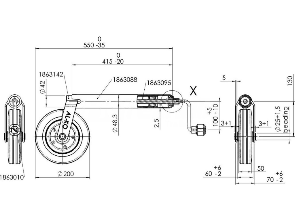 Tartókerék pótkocsi jelzőhöz AL-KO maximális teherbírással 150 kg, tűzihorganyzott, 48 mm-es csőátmérőjű tartóba szerelhető.