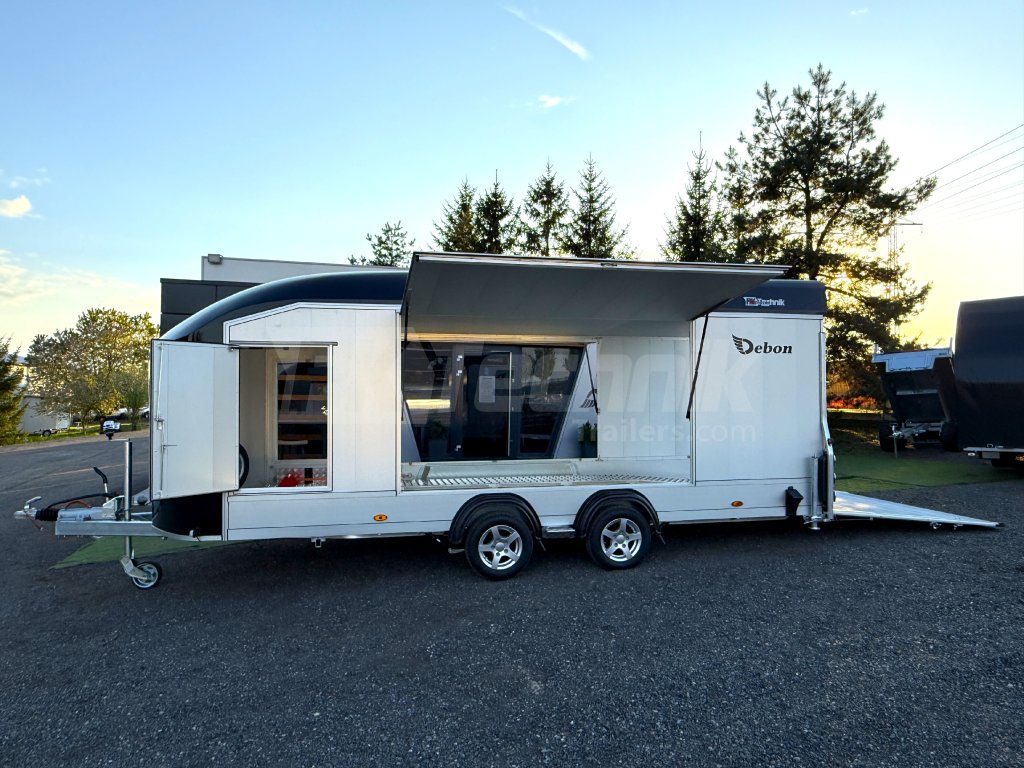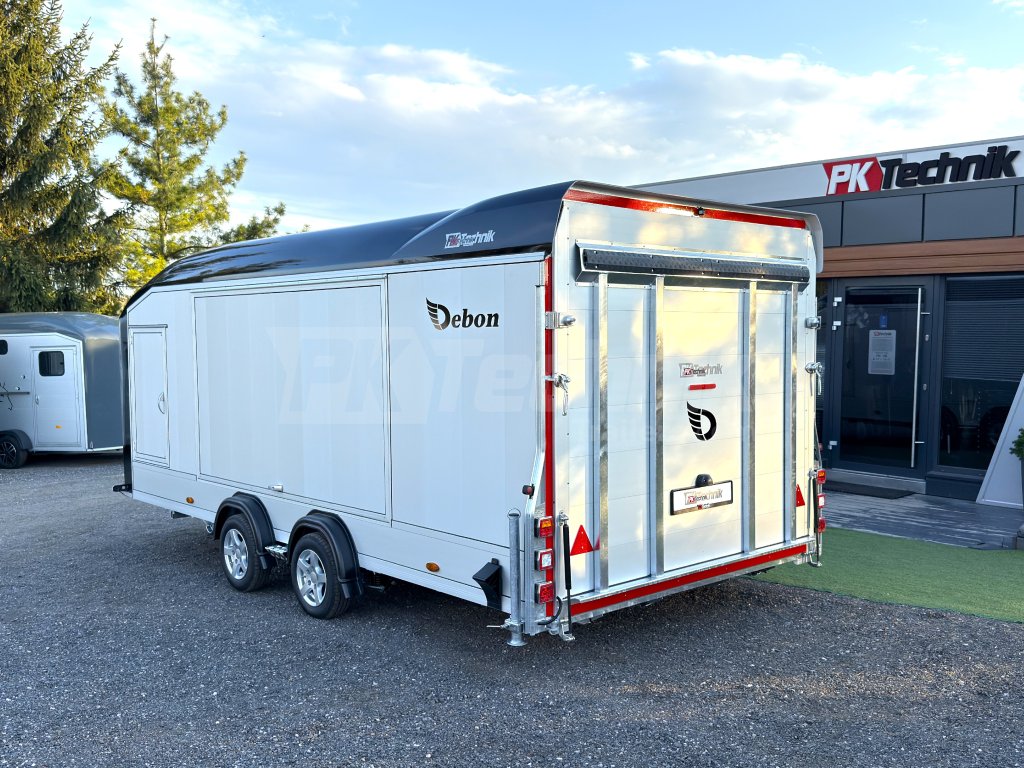 A Debon C2000 dobozos pótkocsi, egy teljes méretű , csúcskategóriás, zárt dobozos pótkocsi, amely 2025-re újdonság, és a Debon legnagyobb gyártású pótkocsija. Ez egy fedett autószállító, amelyet elsősorban járművek kényelmes szállítására terveztek, de természetesen bármi szállítására használható. A 2200 mm széles és 1900 mm magas nyílással a piacon kapható legtöbb személygépkocsi és terepjáró befogadására alkalmas. A Pullman 2 mélyített alvázának, azaz az egyes kerekek független felfüggesztésének köszönhetően, a földtől mért mindössze 435 mm-es rakodási magassággal, a Pullman 2 olyan páratlan és páratlan kezelhetőségi tulajdonságokat kínál, amelyekhez foghatót egyetlen más teherautó sem kínál a piacon! A padló teljes egészében alumínium. Az oldalsó csuklós falak és ajtók szintén alumíniumlemezekből készülnek, amelyek nagyon kényelmes hozzáférést biztosítanak a rakományhoz, és garantálják az alacsony üzemi súlyt és a nagyon hosszú élettartamot. Az aerodinamikus karosszéria 8-10 mm vastag laminált anyagból készül. A keret acélból készült, tűzihorganyzott. Az utánfutó belső alumínium rámpákkal van felszerelve a tökéletes, sima behajtási szög érdekében, ugyanakkor az autó sima és kényelmes módon rögzíthető, miközben a piacon kapható legalacsonyabb sportkocsik ajtajait is ki lehet nyitni.