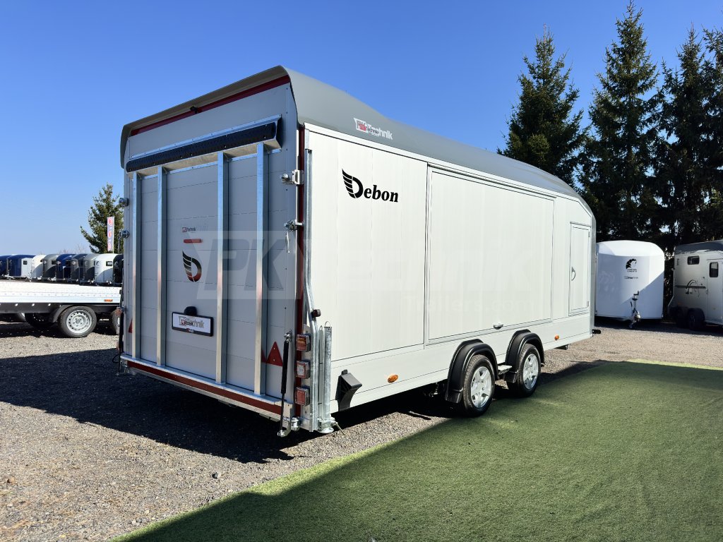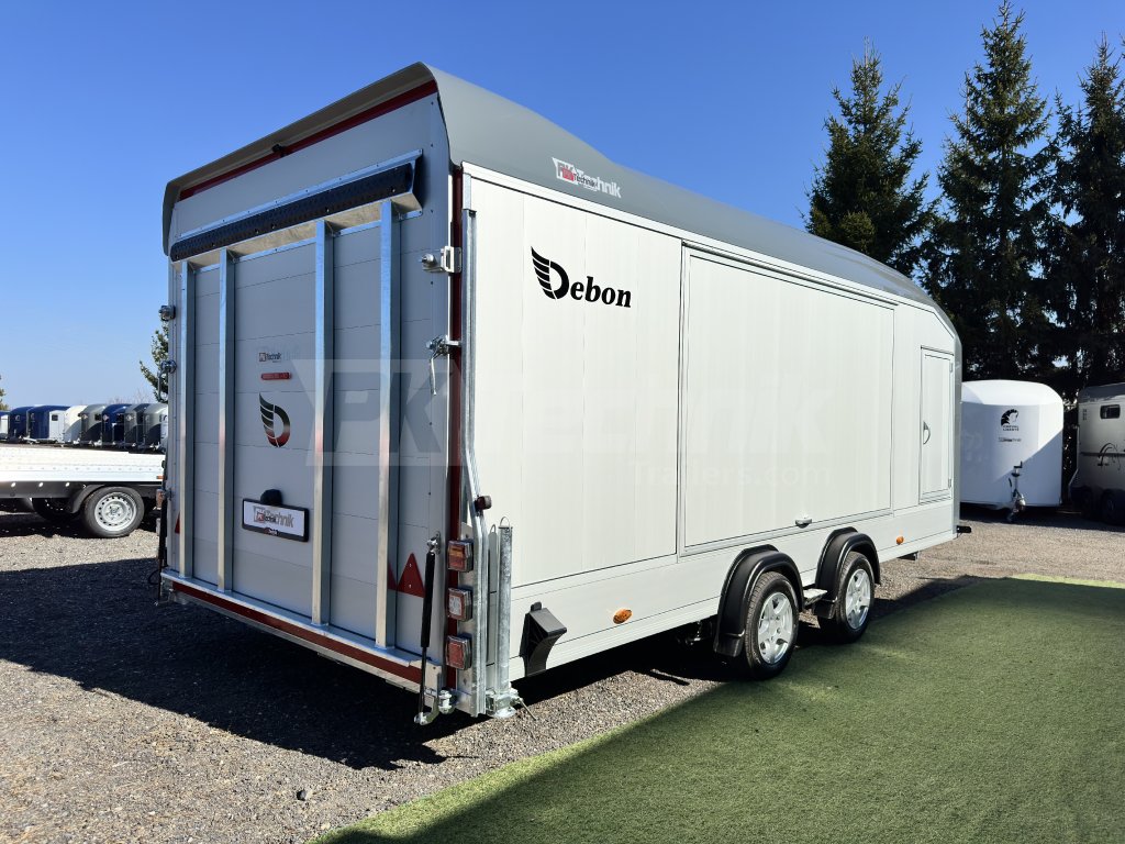 A Debon C2000 dobozos pótkocsi, egy teljes méretű , csúcskategóriás, zárt dobozos pótkocsi, amely 2025-re újdonság, és a Debon legnagyobb gyártású pótkocsija. Ez egy fedett autószállító, amelyet elsősorban járművek kényelmes szállítására terveztek, de természetesen bármi szállítására használható. A 2200 mm széles és 1900 mm magas nyílással a piacon kapható legtöbb személygépkocsi és terepjáró befogadására alkalmas. A Pullman 2 mélyített alvázának, azaz az egyes kerekek független felfüggesztésének köszönhetően, a földtől mért mindössze 435 mm-es rakodási magassággal, a Pullman 2 olyan páratlan és páratlan kezelhetőségi tulajdonságokat kínál, amelyekhez foghatót egyetlen más teherautó sem kínál a piacon! A padló teljes egészében alumínium. Az oldalsó csuklós falak és ajtók szintén alumíniumlemezekből készülnek, amelyek nagyon kényelmes hozzáférést biztosítanak a rakományhoz, és garantálják az alacsony üzemi súlyt és a nagyon hosszú élettartamot. Az aerodinamikus karosszéria 8-10 mm vastag laminált anyagból készül. A keret acélból készült, tűzihorganyzott. Az utánfutó belső alumínium rámpákkal van felszerelve a tökéletes, sima behajtási szög érdekében, ugyanakkor az autó sima és kényelmes módon rögzíthető, miközben a piacon kapható legalacsonyabb sportkocsik ajtajait is ki lehet nyitni.