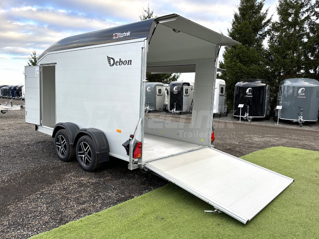 Skříňový přívěs Debon C700 ALU (boční stěny z hliníkových profilů), s boční výklopnou stěnou, od francouzské společnosti Cheval Liberté - Debon, je špičkovým řešením pro přepravu nejrůznějšího nákladu, sportovního vybavení, zejména pro motorsport a volný čas (přeprava motocyklů, přeprava čtyřkolek, přeprava motokár), ale je vhodný také pro komerční využití jako prodejní stánek, pojízdná dílna, nebo k přepravě jakéhokoliv nákladu.