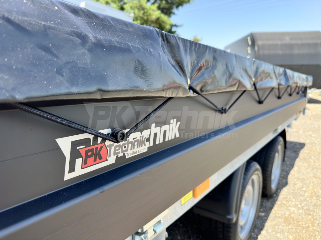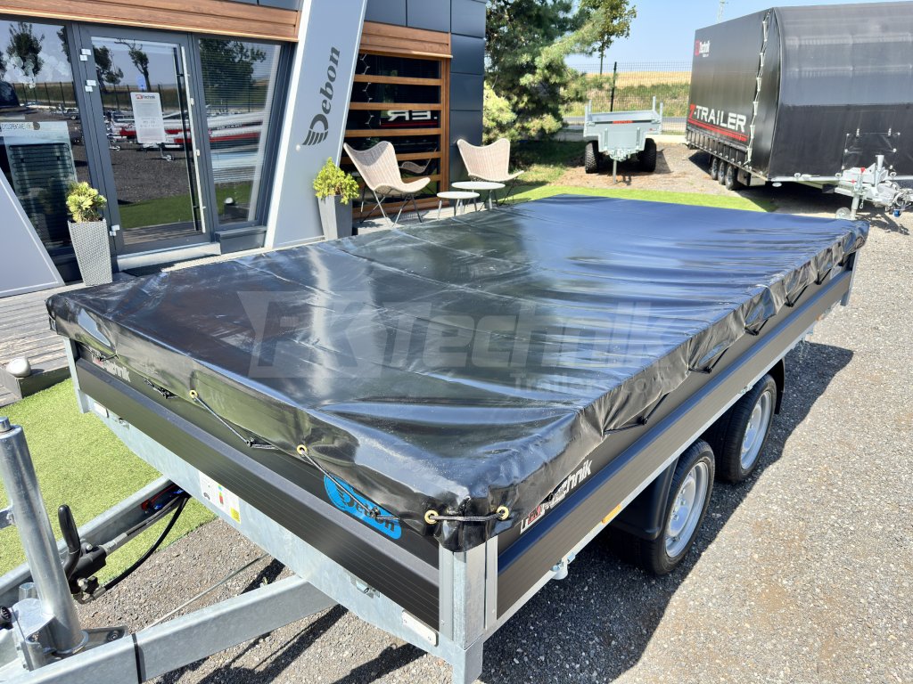 Krycí plachta na sklopný valník DEBON PW 3.3®, pro ochranu a zabezpečení přepravovaného nákladu.