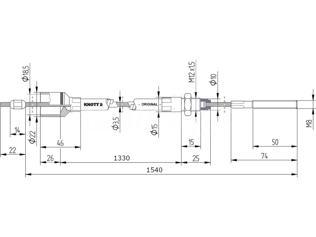 Brzdový lanovod KNOTT 1330/1540 mm, závit M8