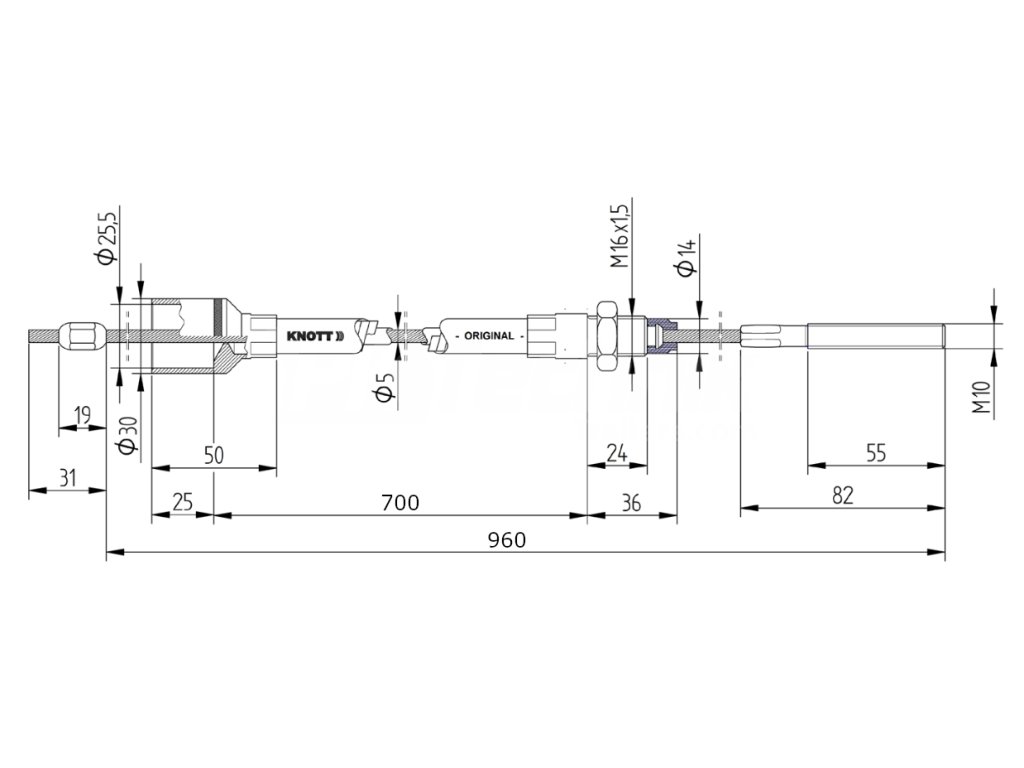 Brzdový lanovod pro GB 20-35 KNOTT 700/960 mm, závit M10