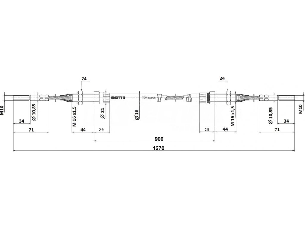 Brzdový lanovod pro KHV KNOTT 900/1270 závit M10-M10