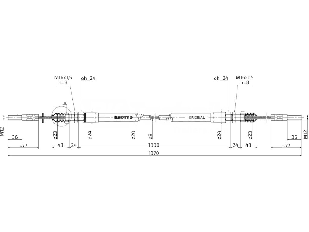 Lanovod brzdový pro KHV KNOTT 1000/1370 závit M12-M12