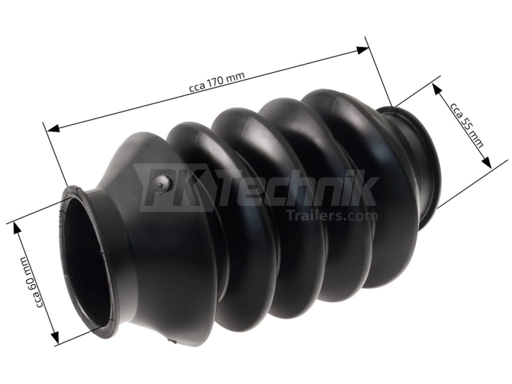 Pryžová manžeta KNOTT je určená k ochraně tažné trubky nájezdové brzdy před povětrnostními vlivy a nečistotami. Prasklou nebo jinak poškozenou manžetu doporučujeme vyměnit co nejdříve. Zrezlá nebo znečištěná tažná trubka jinak velmi rychle poškodí pouzdra nájezdové brzdy.