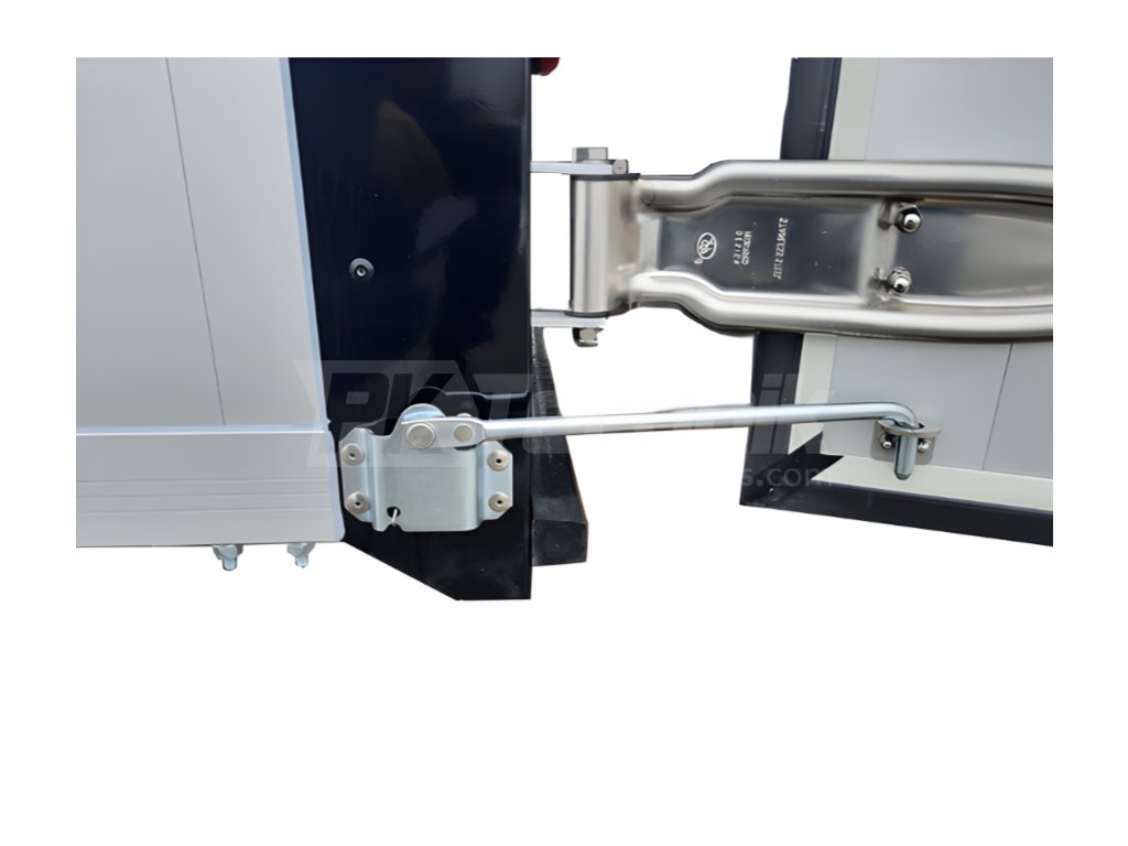 Aretace pro pravou část dvoukřídlých zadních dveří přívěsů Cheval Liberté a zadní rampy pro přívěsy Debon. Mechanismus slouží k fixaci dveřního křídla nebo rampy v otevřené poloze, čímž efektivně předchází nekontrolovanému zavření vlivem vnějších sil a zajišťuje bezpečnost.