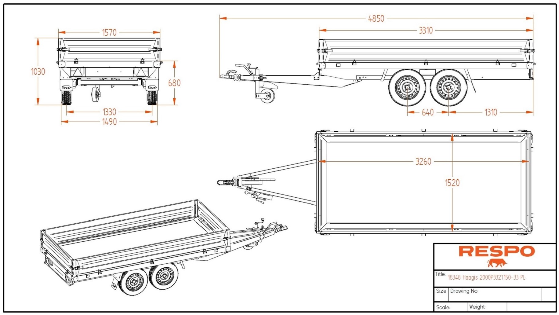 Extrémně odolný, dvouosý nebrzděný přívěsný přívěs RESPO 2000P332T150 PLH FLATBED. Vyniká oproti běžným přívěsům především díky robustnímu žárově zinkovanému rámu z "C" profilu a robustní torzní nápravou s rameny. Ve verzi FLATBED je u přívěsu uložení kol pod ložnou plochou a všechny bočnice přívěsu jsou tak odnímatelné. Vyrobeny jsou z robustního plechu s povrchovou úpravou Magnelis ®, která je až 3x odolnější proti korozi, díky chemickému složení zinku s příměsemi hliníku a hořčíku.