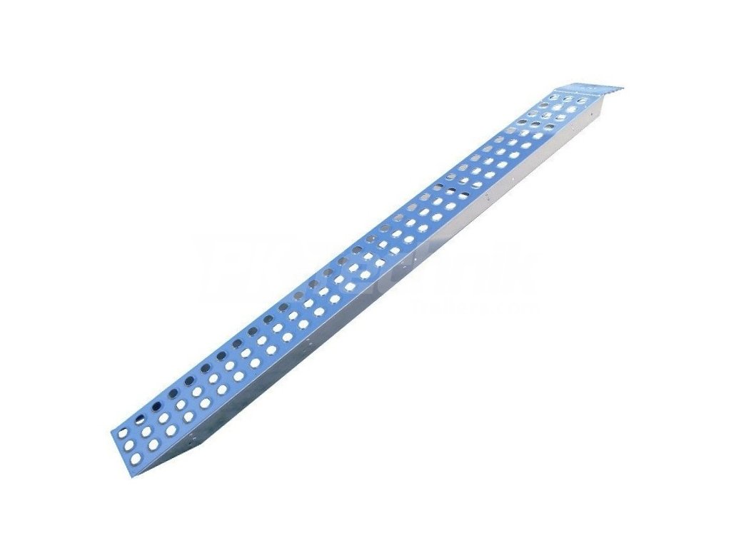 Univerzální, ocelový, pozinkovaný, rovný nájezd vhodný pro sekačky, malé traktůrky, čtyřkolky a jiná zařízení, při použití pro širší kola nebo komfortnější nájezd s motocyklem ho lze spojit s dalším nájezdem v předvrtaných otvorech v bocích nájezdu pomocí šroubů M8. K přednostem nájezdu patří celoplošná protiskluzová úprava.