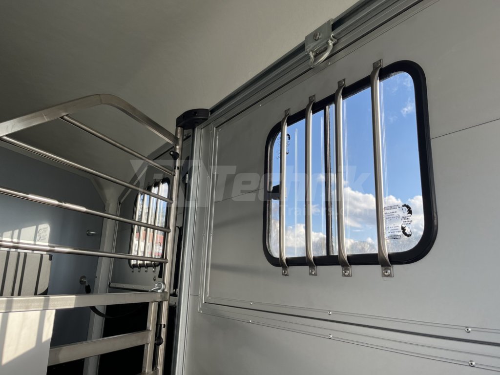 Boční posuvné okno s bezpečnostními mřížemi pro přívěsy Cheval Liberté. Je nutné změřit otvor pro Vaše okno k přívěsu, starší modely se mohou rozměrově lišit.