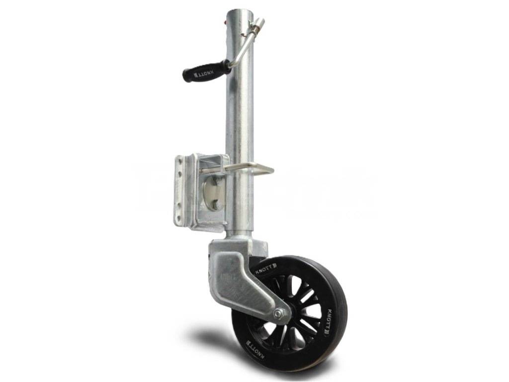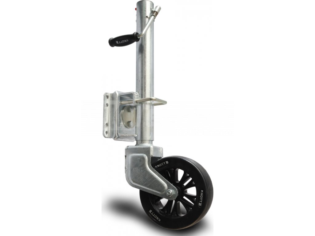 Koło podporowe do przyczepy marki KNOTT o maksymalnej ładowności 500 kg. Montaż w przyspawanym kołnierzu obrotowym, średnica rury 57 mm.
