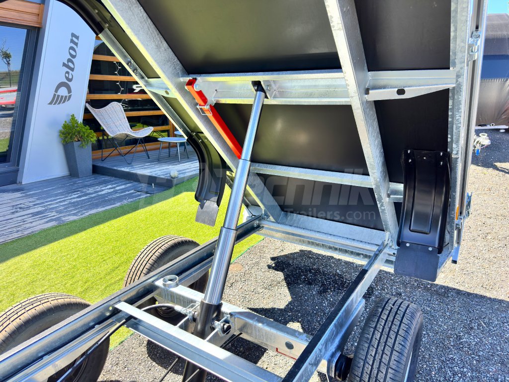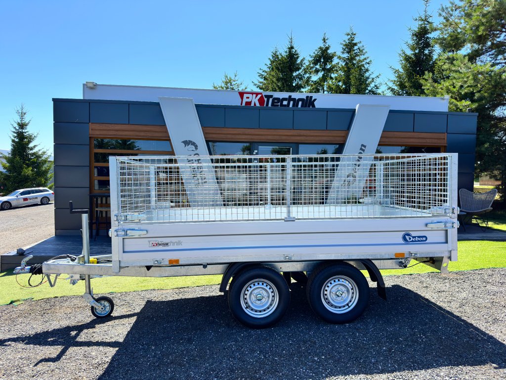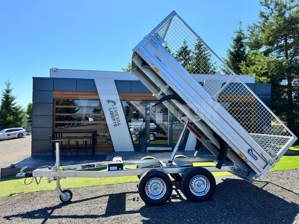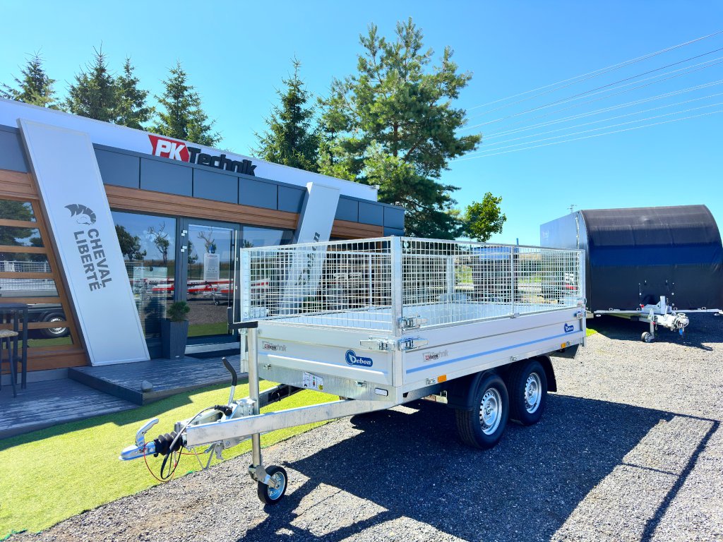 Elektrohydraulicznie składana przyczepa wielofunkcyjna, przyczepa towarowa wiodącej francuskiej firmy Cheval Liberté, Debon PW 1.2 LUX z wbudowanym akumulatorem do wygodnego składania skrzyni ładunkowej . Przyczepa jest zbudowana na ocynkowanej ogniowo stalowej ramie własnej produkcji, przy użyciu najnowszych maszyn CNC. Przyczepy wywrotki Debon Tipper wyposażone są w osie wiodącej niemieckiej firmy KNOTT. Zdejmowane ściany boczne wykonane z anodowanych profili aluminiowych. Powierzchnia ściółki wzmocniona ocynkowaną blachą zapewnia dłuższą żywotność i trwałość. Łóżko jest wyposażone w 6 zacisków do mocowania przewożonego ładunku. Wysokiej jakości wykonanie z wykorzystaniem najnowszej technologii CNC do codziennego, profesjonalnego użytku.