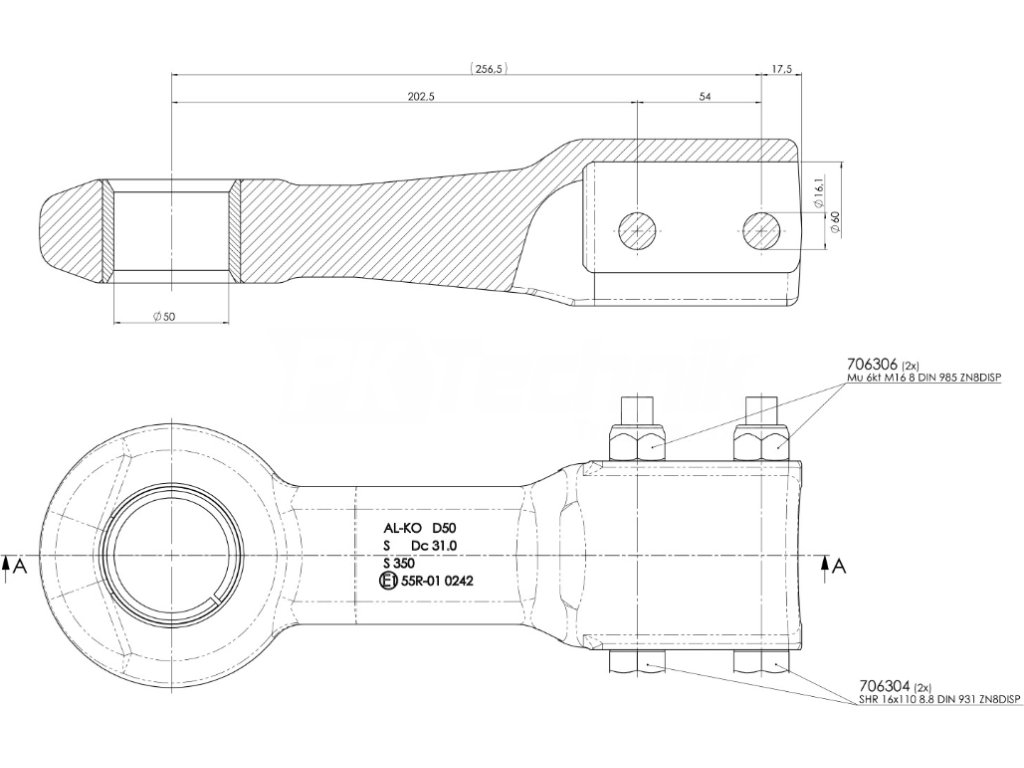 Oczko holownicze DIN 50 mm AL-KO (do rury 60 mm)