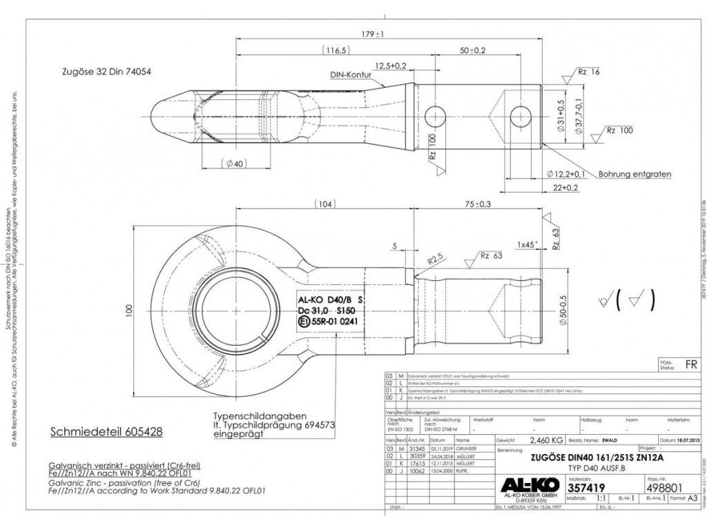 Ucho holownicze DIN 40 mm AL-KO do 161, 251S STARA KONSTRUKCJA (do rury 50 mm)