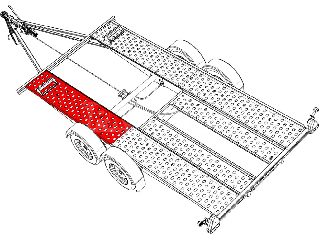 Pojezdový plech VAPP, levý přední pro přívěsy typu PAV o celkové hmotnosti 2000 - 2700 kg nebo PA o délce ložné plochy 4200 mm.