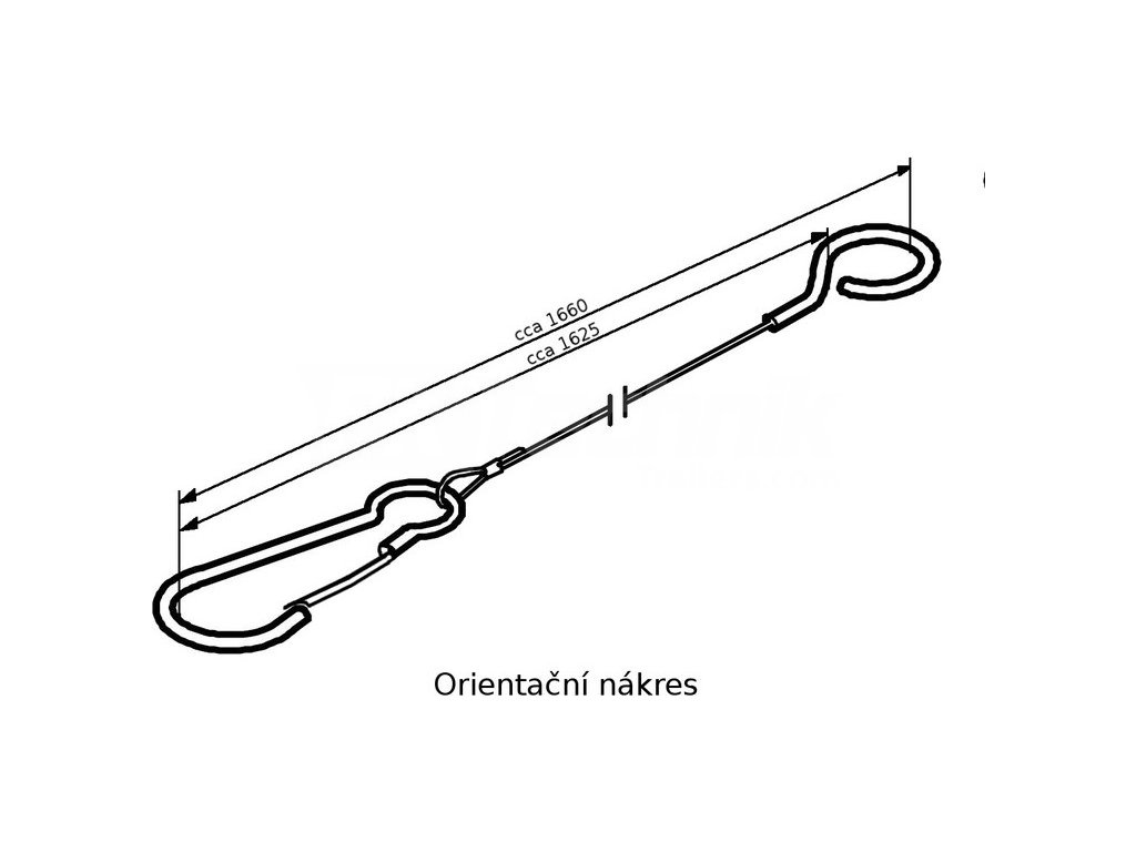 Originální pojistné lanko pro nájezdové brzdy AL-KO 101 VB a 161 VB. Lanko je má délku 1660 mm a je opatřeno háčkem, který se provléká otvorem v páce ruční brzdy a následně se zajišťuje ohnutím pomocí velkých kleští.