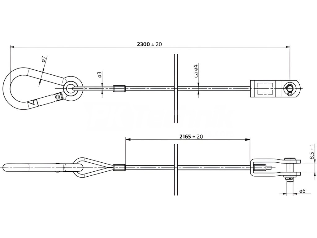 Pojistné lanko 2300 mm s vidlicí, KNOTT