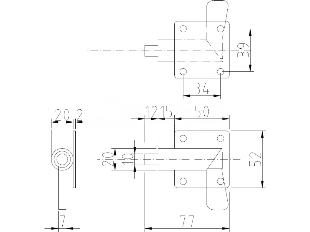Zajišťovací kolík s pružinou pravý, s plotnou