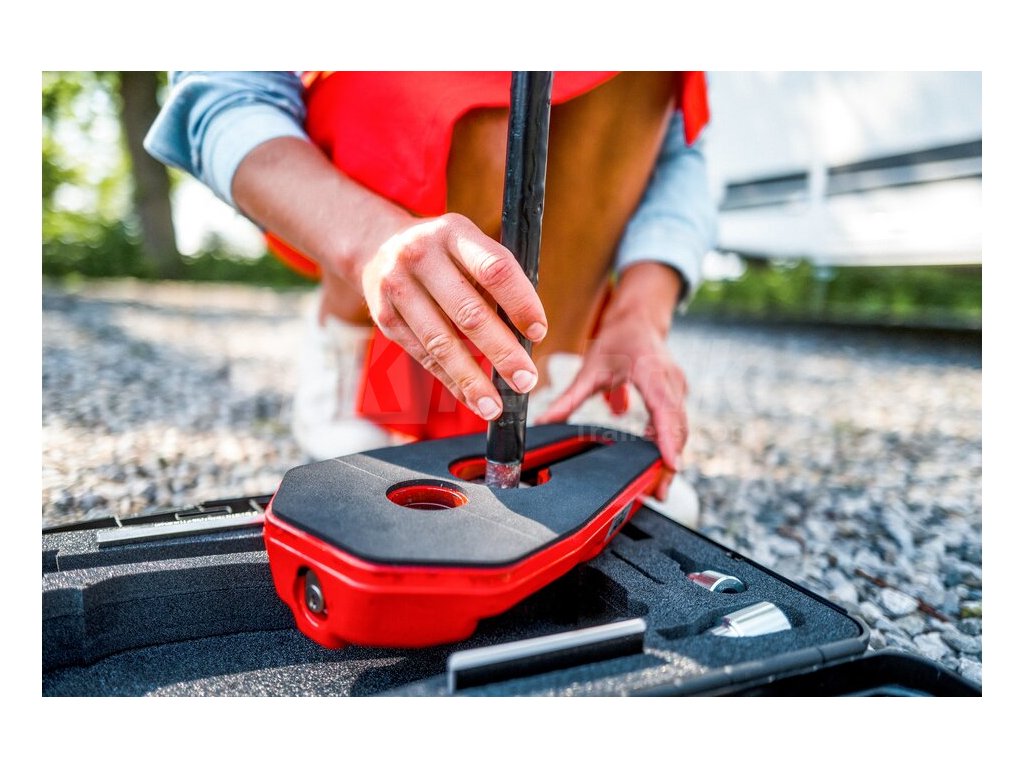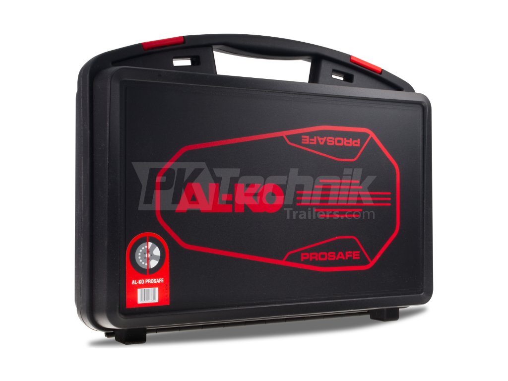 Součástí produktu je praktický úložný kufřík pro snadné skladování a přepravu zámku i příslušenství. V balení naleznete také červenou výstražnou etiketu, která slouží jako upozornění na uzamčené kolo přívěsu (např. připevněním na volant tažného vozidla nebo na spojovací zařízení přívěsu).