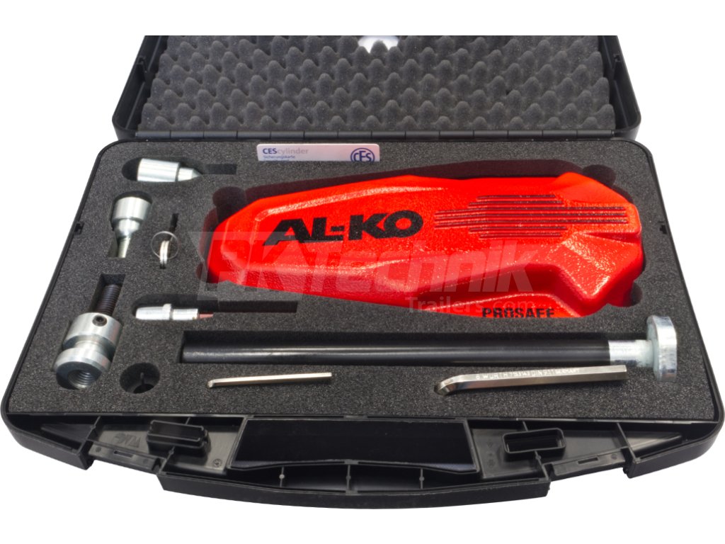 AL-KO Prosafe je robustní zámek kola přívěsu určený k ochraně přívěsů a karavanů proti krádeži. Zámek se nasazuje na čep speciálního kolového šroubu a blokuje otáčení kola, čímž znemožňuje manipulaci s přívěsem.