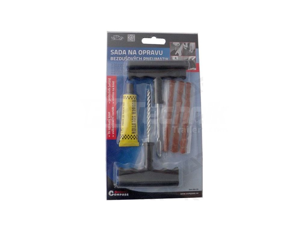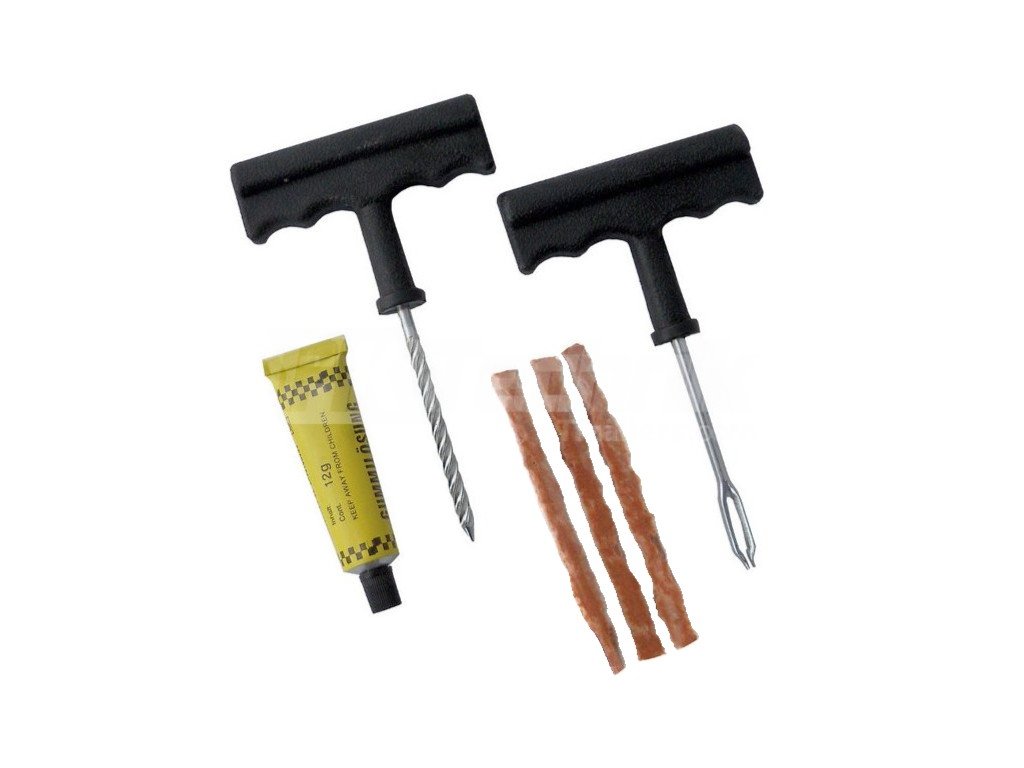 Opravná sada slouží k rychlé a spolehlivé opravě bezdušových pneumatik.