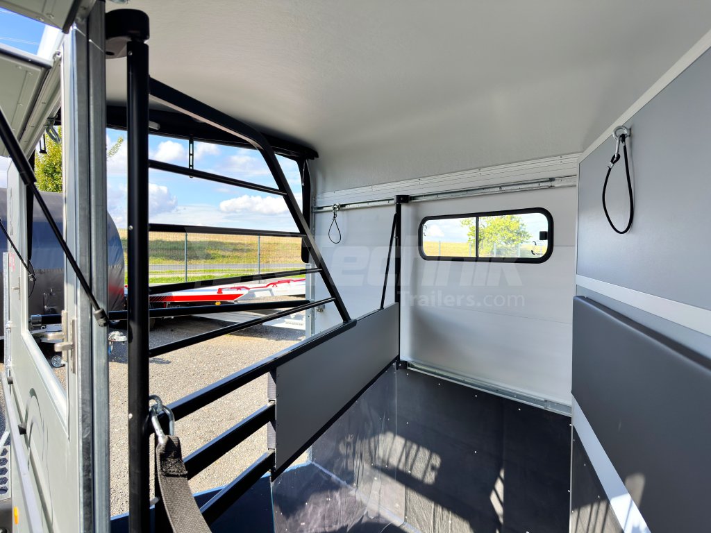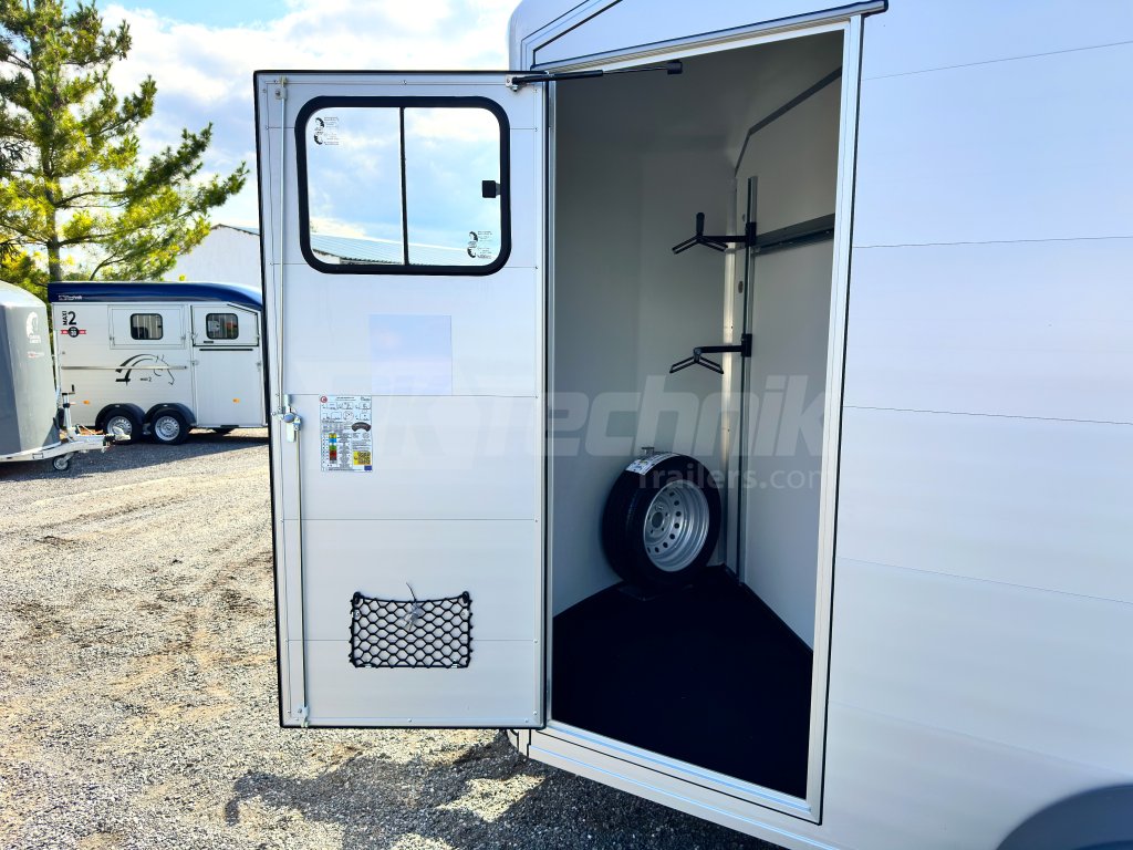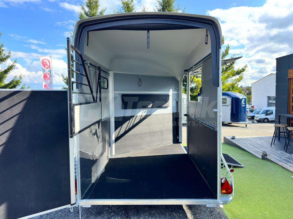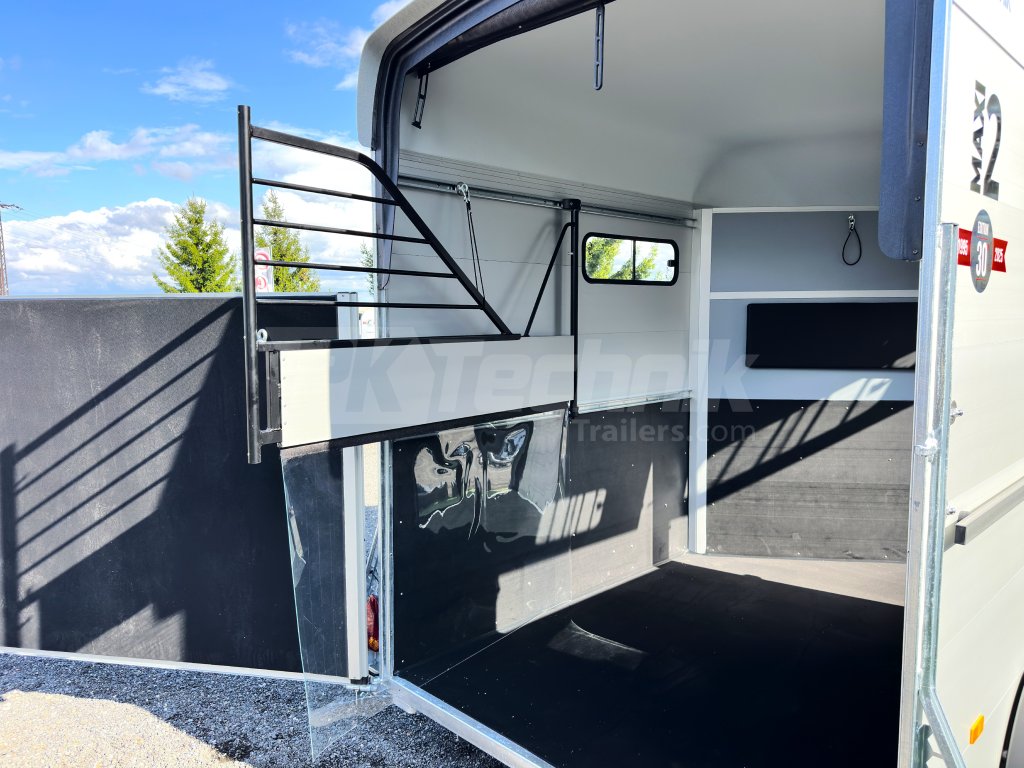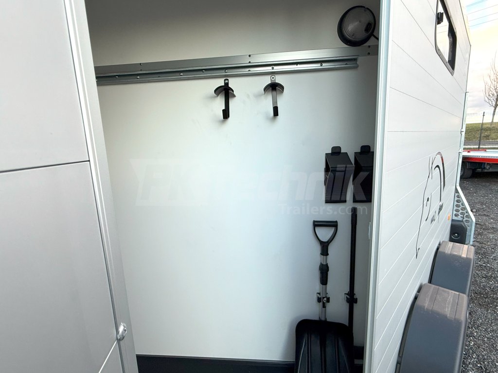 Ve standardní výbavě je velká prostorná sedlovna přístupná venkovními bočními dveřmi vlevo a vybavená držáky sedel a uzdeček. Základní celkovou hmotnost přívěsu vám, jako akreditovaný importér pro ČR schválený ministerstvem dopravy, můžeme snížit z 2600 kg až na 1400 kg.