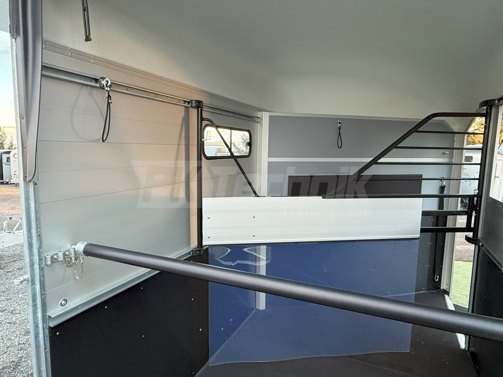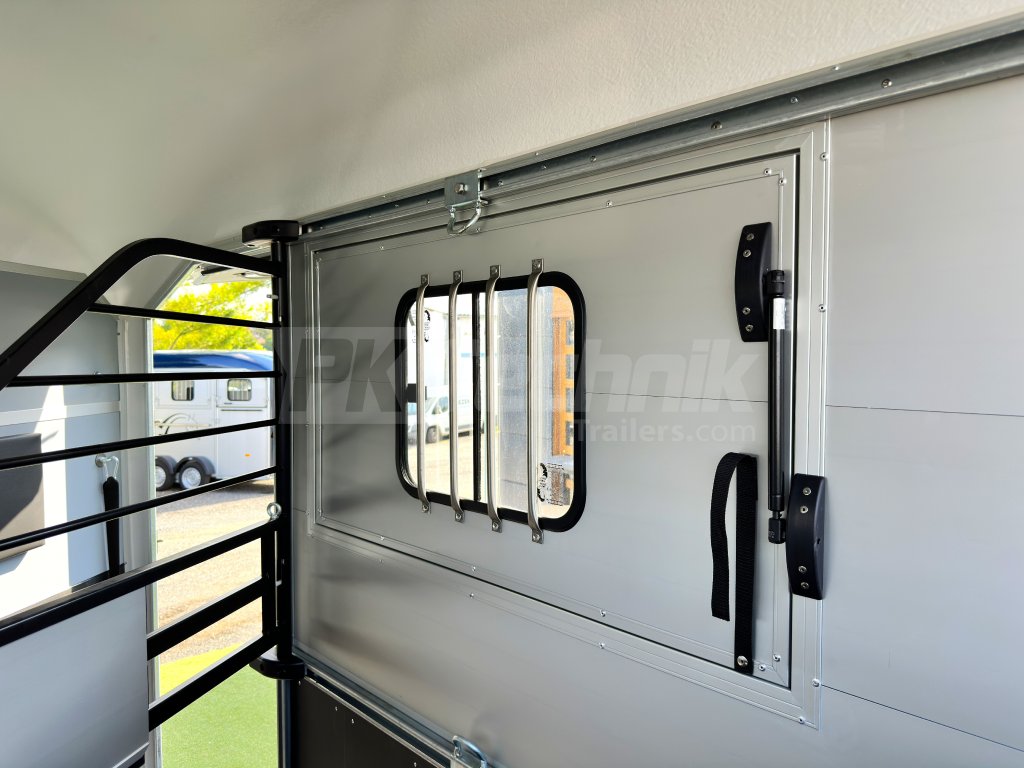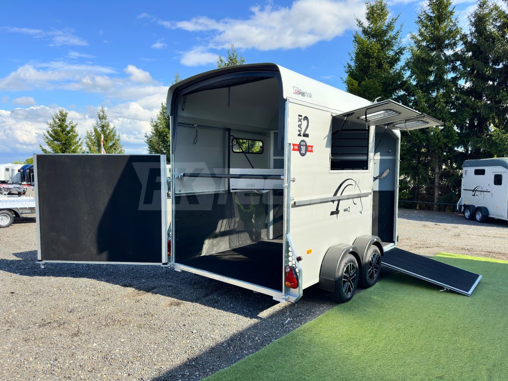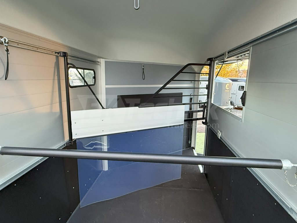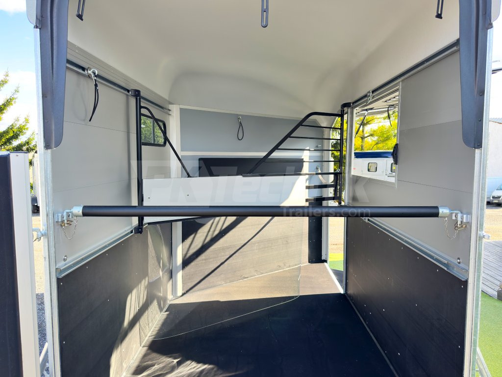 Ve standardní výbavě je velká prostorná sedlovna přístupná venkovními bočními dveřmi vlevo a vybavená držáky sedel a uzdeček. Základní celkovou hmotnost přívěsu vám, jako akreditovaný importér pro ČR schválený ministerstvem dopravy, můžeme snížit z 2600 kg až na 1400 kg.