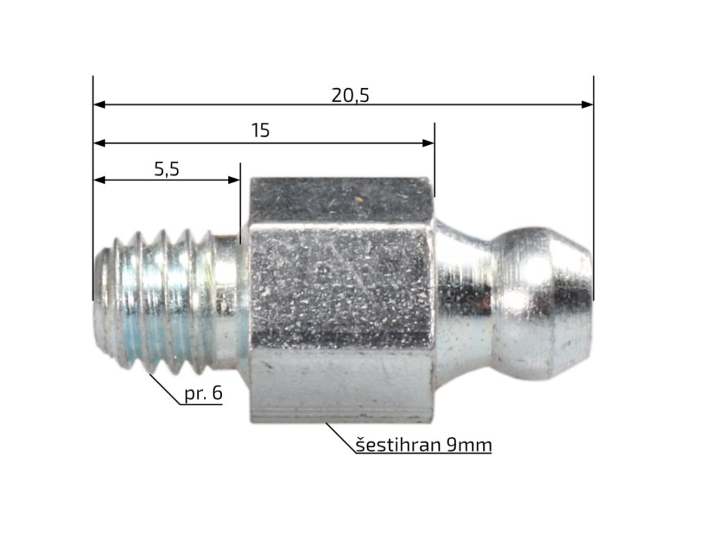 Niplu de ungere KNOTT filetat M6x1 pentru frâna de supraîncărcare (versiunea veche)
