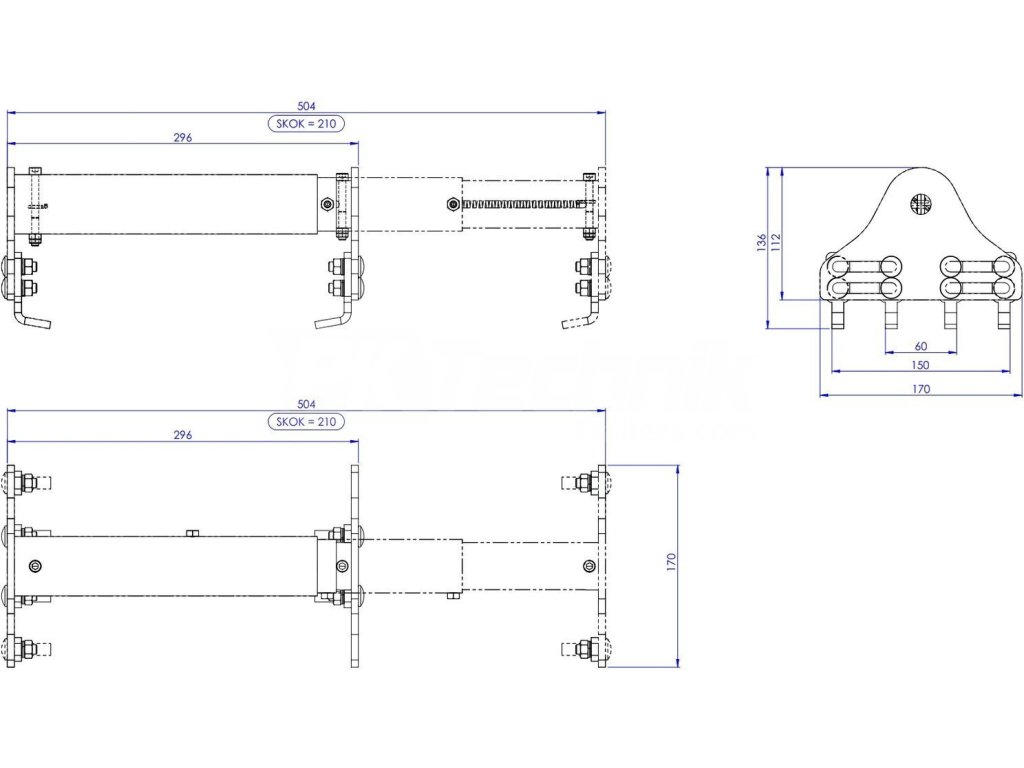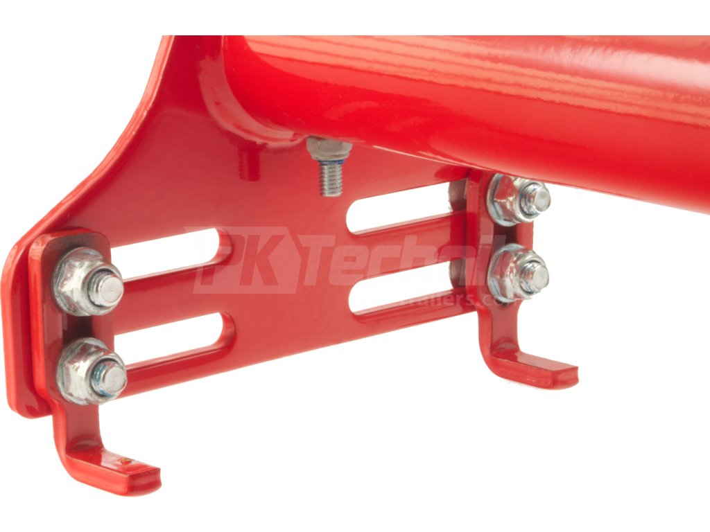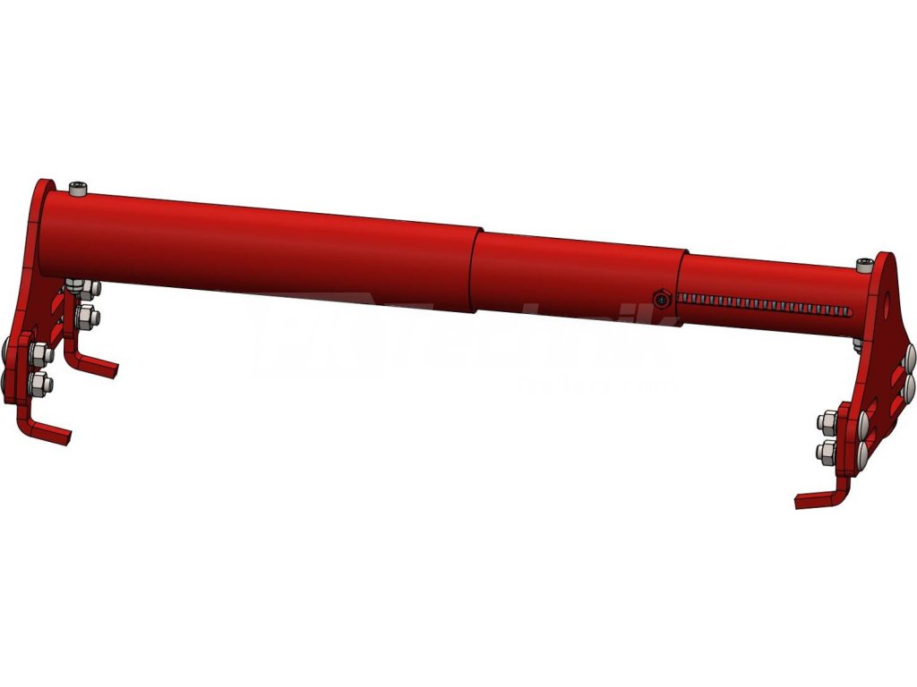 - Cârligele de blocare sunt, de asemenea, reglabile în direcția longitudinală. Pasul poate fi reglat continuu de la 48 la 136 mm, pe marginile exterioare ale cârligelor intervalul este de 58-148 mm.
