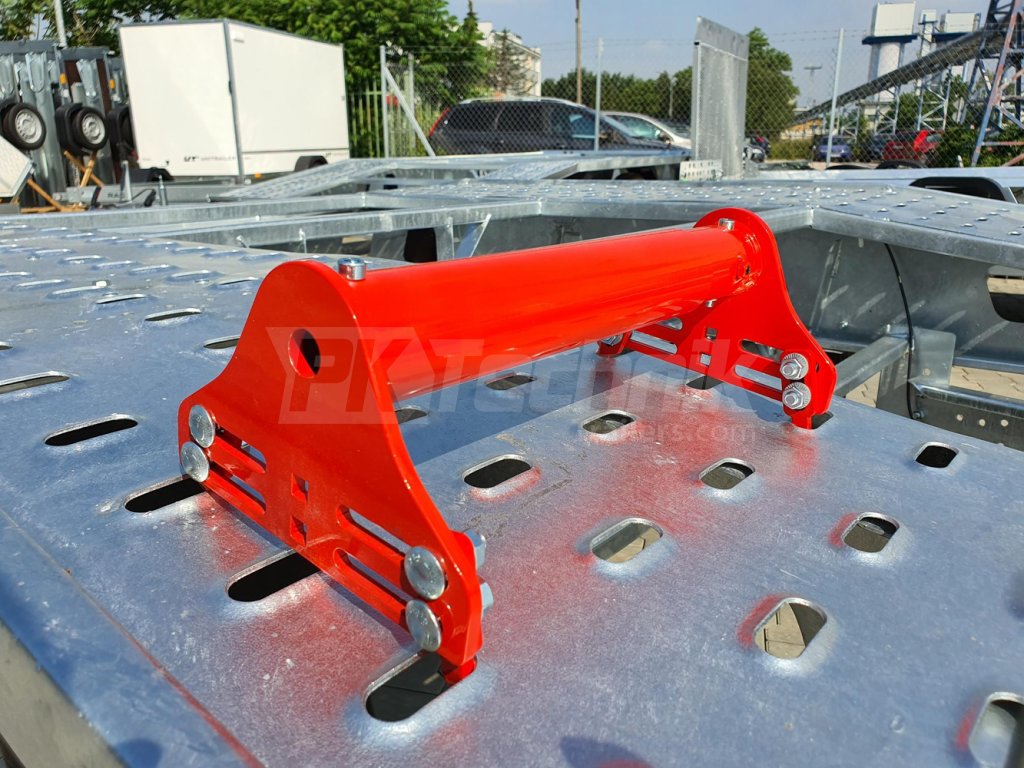 Piesă cu eliberare rapidă "CARSTOP" pentru fixarea vehiculului transportat pe remorci sau transportoare auto echipate cu plăci de rulare perforate. Design universal robust pentru perforarea diferitelor tipuri și înălțimi. Potrivit pentru Käsbohrer, Lohr și alte sisteme perforate.
