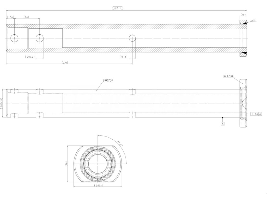 Tub de tragere frână de depășire AL-KO 351 VB-2 (dia. 60 mm)Tub de tracțiune de frână de depășire AL-KO 351 VB-2 (dia. 60 mm)