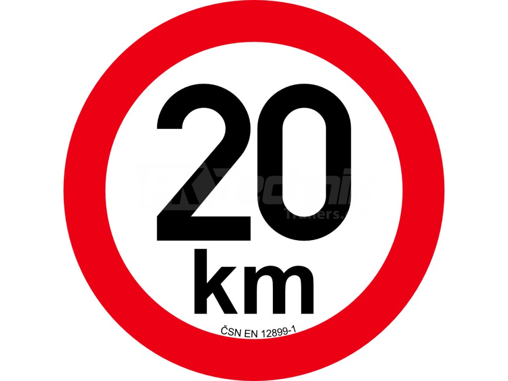 Samolepka s označením nejvyšší povolené rychlosti 20 km/h.