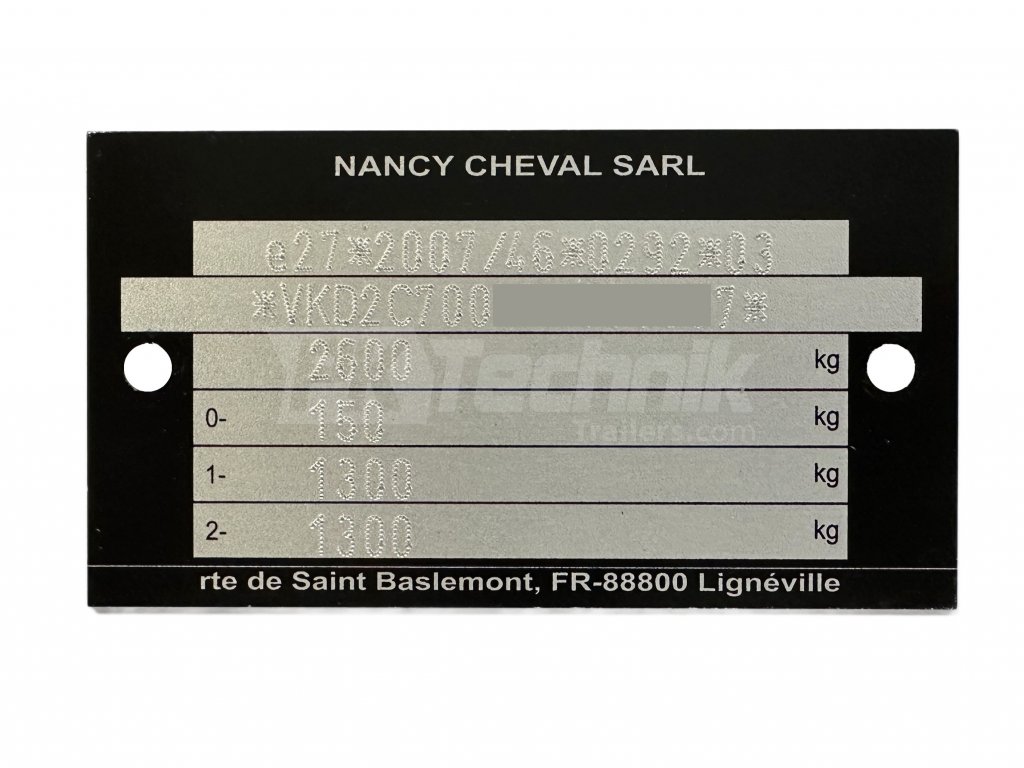 Typový štítek pro přívěsy Cheval Liberté. Dodací lhůta 3-5 pracovních dní.