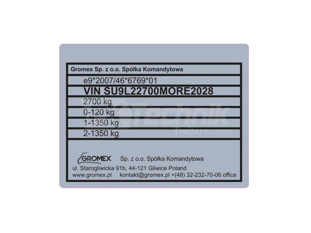 Typový štítek pro přívěsy Gromex, v případě ztráty či poškození na přívěsu Vám zajistíme nový.