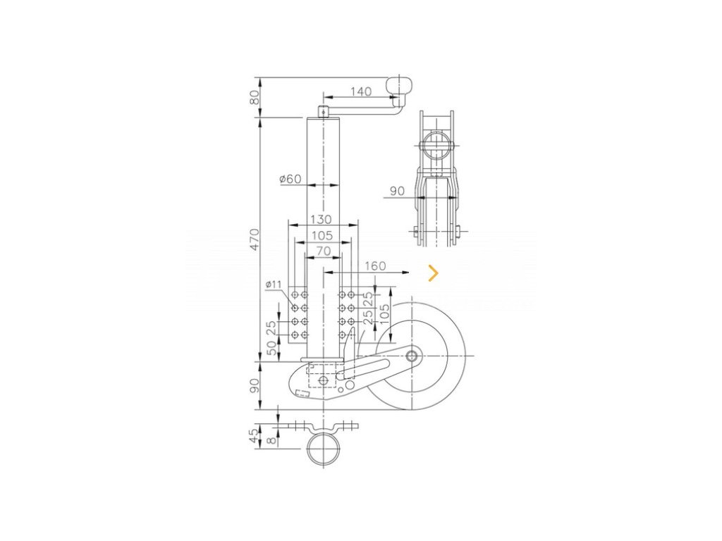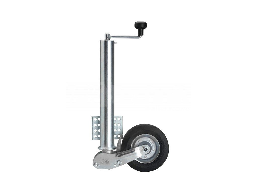 Automatické oporné koliesko k prívesu značky WINTERHOFF s maximálnou nosnosťou 250 kg, montáž do navarenej príruby, priemer rúrky 60 mm.