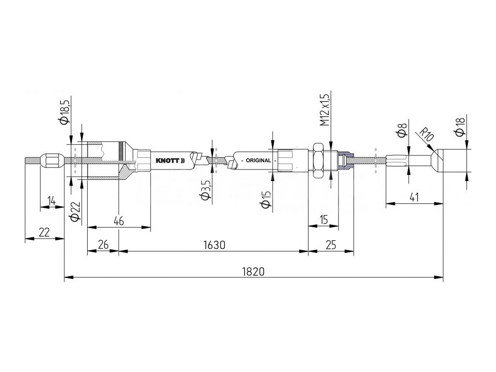 Lanovod brzdový KNOTT 1630/1820 mm rýchlomont. (so šošovkou)