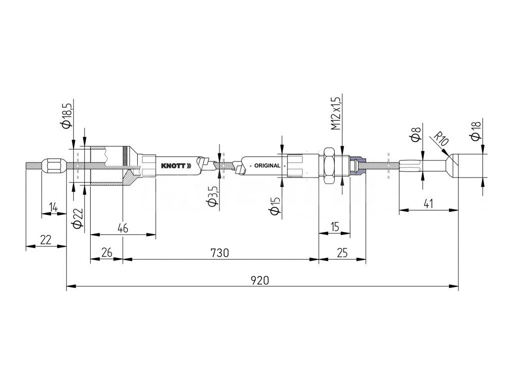 Lanovod brzdový KNOTT 730/920 mm rýchlomont. (so šošovkou)