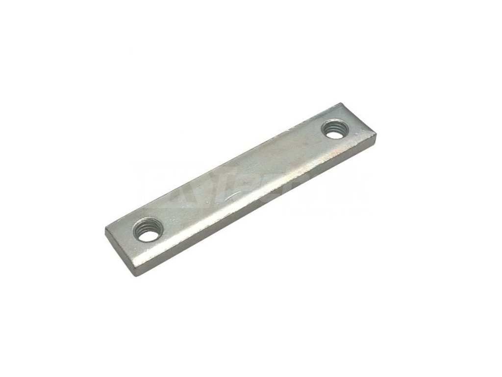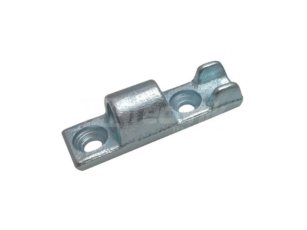 Liatinový pánt bočníc. Záves sa dodáva s vložkou - doskou, ktorá sa zasúva do drážky v duralovej bočnici. Čap závesu je k nemu priskrutkovaný. Bočnica s týmito závesmi, otvorená o 90 stupňov, sa dá ľahko vysunúť zo závesov. Ak je bočná stena otvorená viac alebo menej, čap závesu v kryte je zabezpečený proti vypadnutiu.