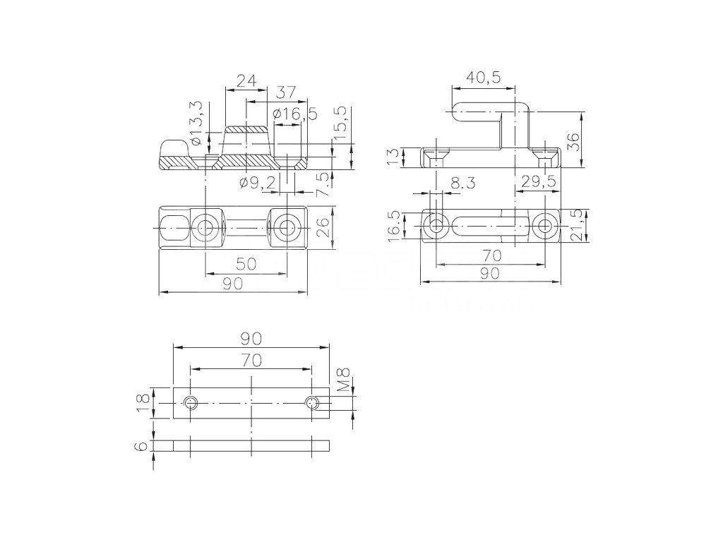 - rozstup otvorov pre rám 70 mm