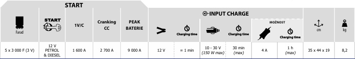 | Startovací proud: | 12V (1600 - 9000A) |