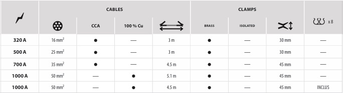 Štartovacie káble GYS PROFI, najvyššia možná kvalita, ktorá vás nikdy nenechá v nepríjemnej situácii. Bronzové svorky, kvalitný medený kábel s deklarovaným prierezom, vysoká úroveň spracovania, to všetko spolu vytvára najvyššiu úroveň produktu pre skutočných profesionálov.