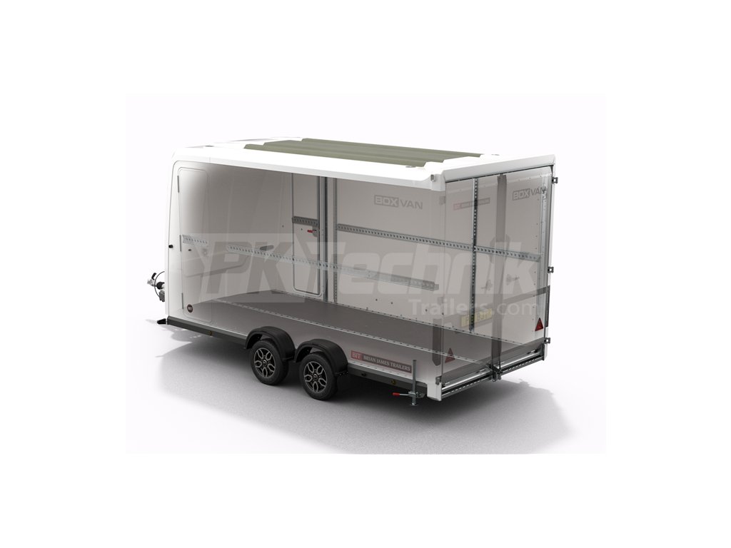 Skříňové přívěsy BOX VAN jsou novinkou v nabídce prémiových přívěsů Britské renomované značky Brian James Trailers. Tento skříňový přívěs vyniká především unikátním systémem zadních dveří. Tyto dveře je možné otevírat jako klasické křídlové, nebo sklápět jako dělenou nájezdovou rampu. Břepravníky BOX VAN jsou univerzálním nástrojem. Vhodné pro přepraku široké škály nákladů. Při použítí originální vestavby jsou perfektní volbou pro přepravu motokár a veškerého závodního vybavení.