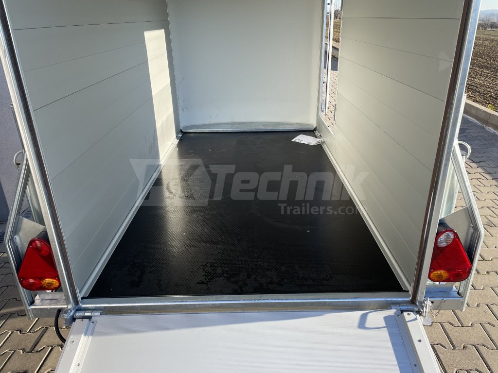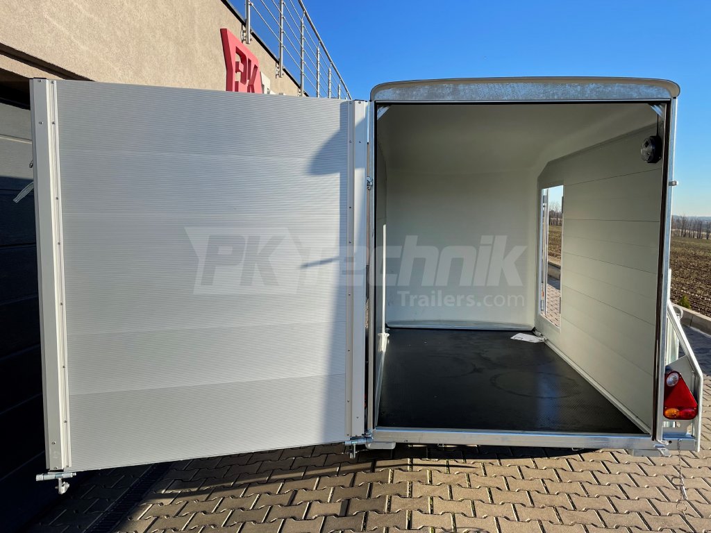 Tento bržděný přívěs má bočnice z dutých hliníkových profilů (ALU), do kterých lze připevnit nejrůznější příslušenství dle potřeb každého uživatele. Standardní výbava zahrnuje také pravé boční dveře a nápravy a brzdovou soustavu KNOTT. Díky tomu může nabídnout nejlepší poměr cena/výkon.